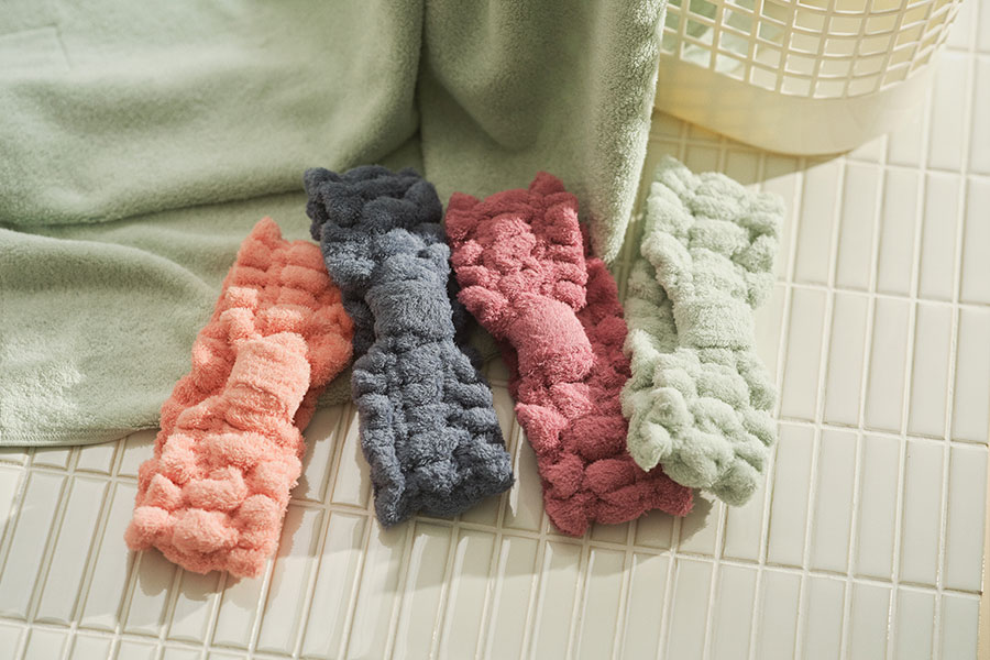 ヘアタオル&へバンドはふんわりしたタオルの素材が見た目にも華やかで、ギフトにも人気のアイテムです。