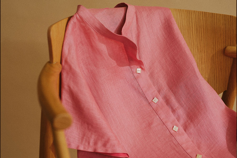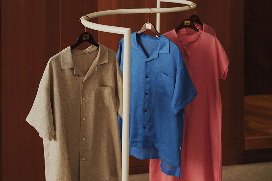 ウォッシュリネンのやわらかな風合いと、風を通す軽やかな着心地。