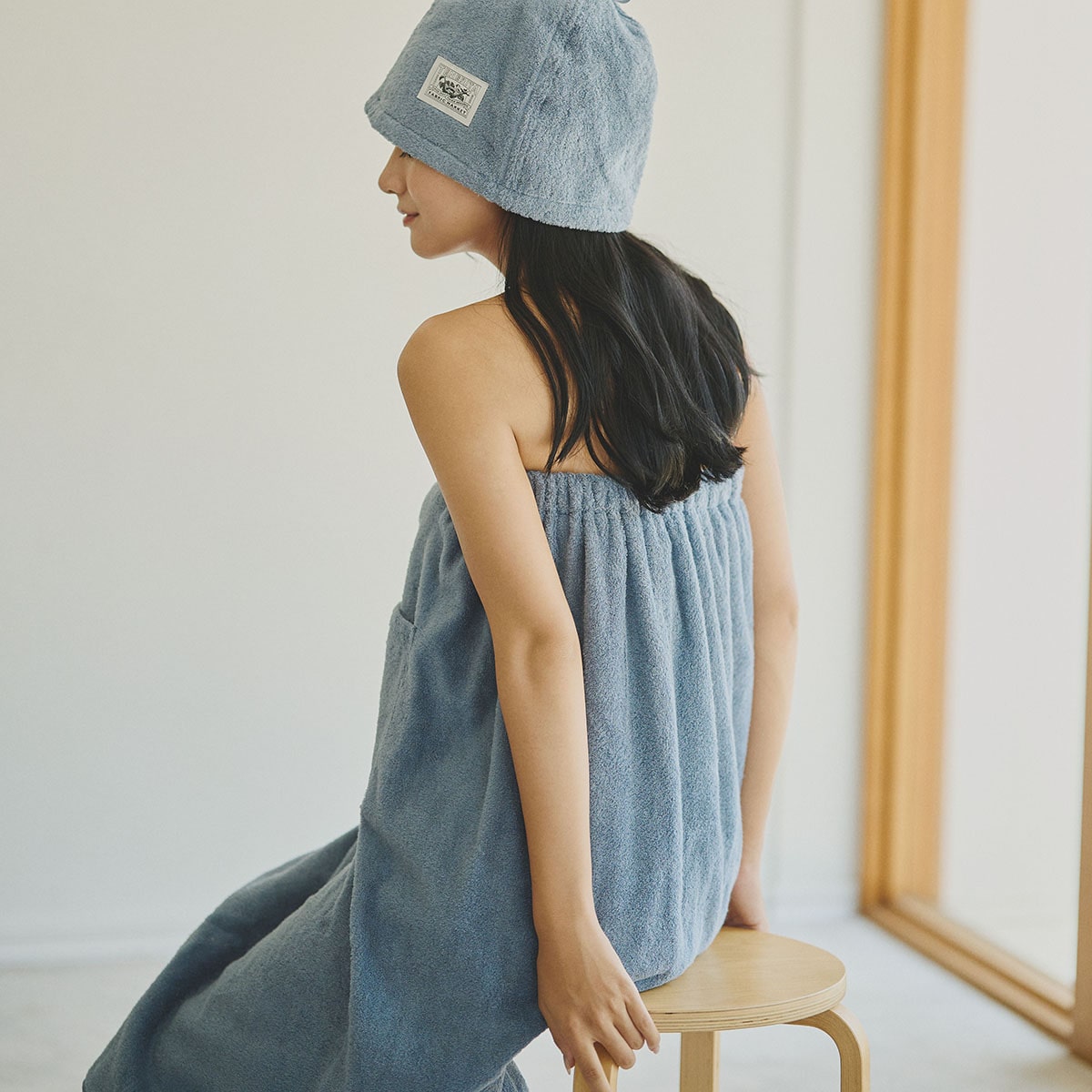 サウナ上りやお風呂上りにおすすめの、ユニセックスでお使いいただけるサウナバスラップです。