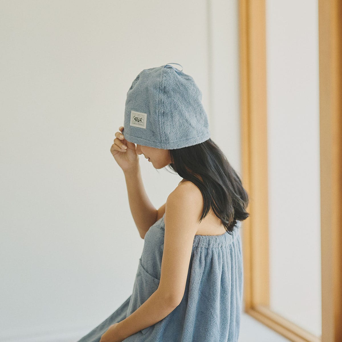 薄く軽いパイル地で作ったやわらかなサウナバスラップ