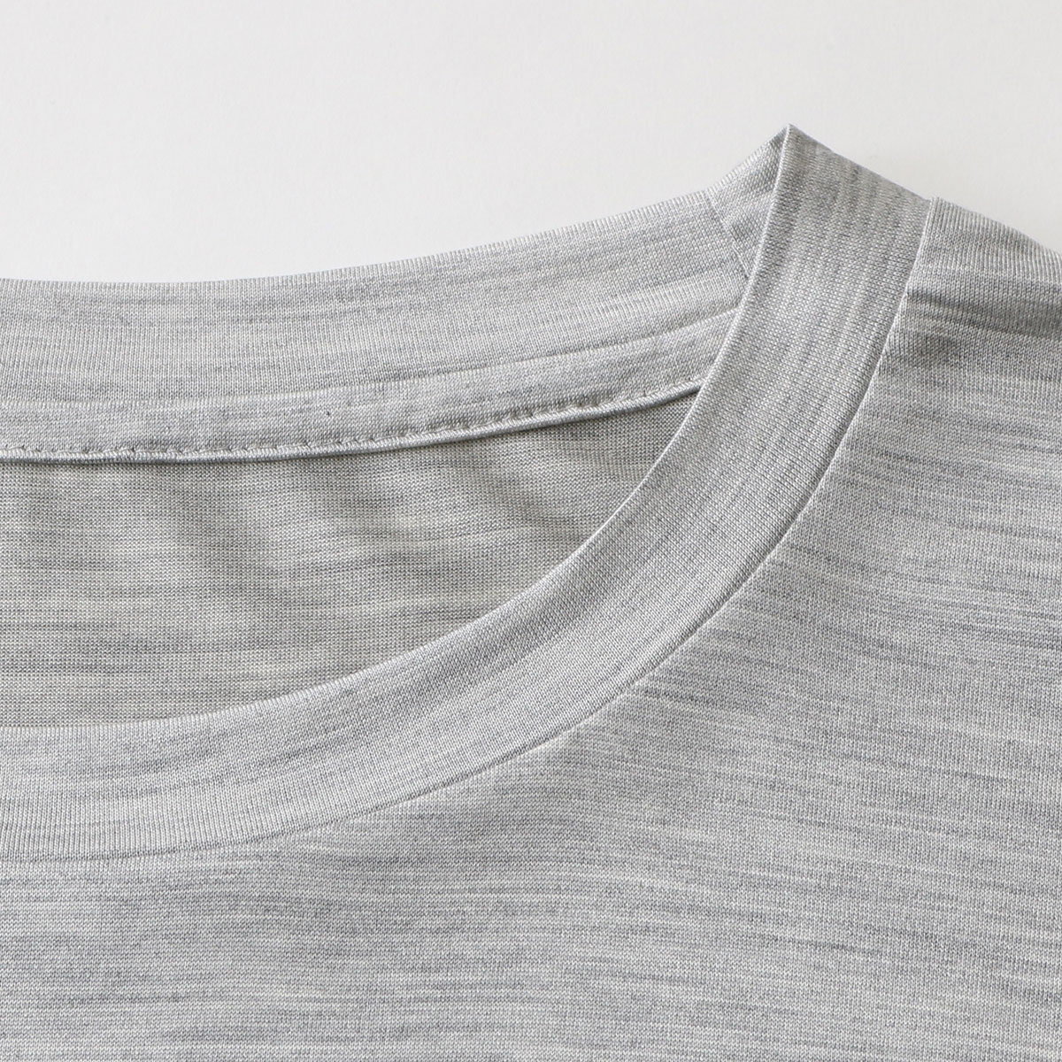 とろみのある生地の心地よさを引き立てるシンプルなデザインと、縫い目をできるかぎりフラットにした丁寧な縫製にも上質さを感じられる一着です。