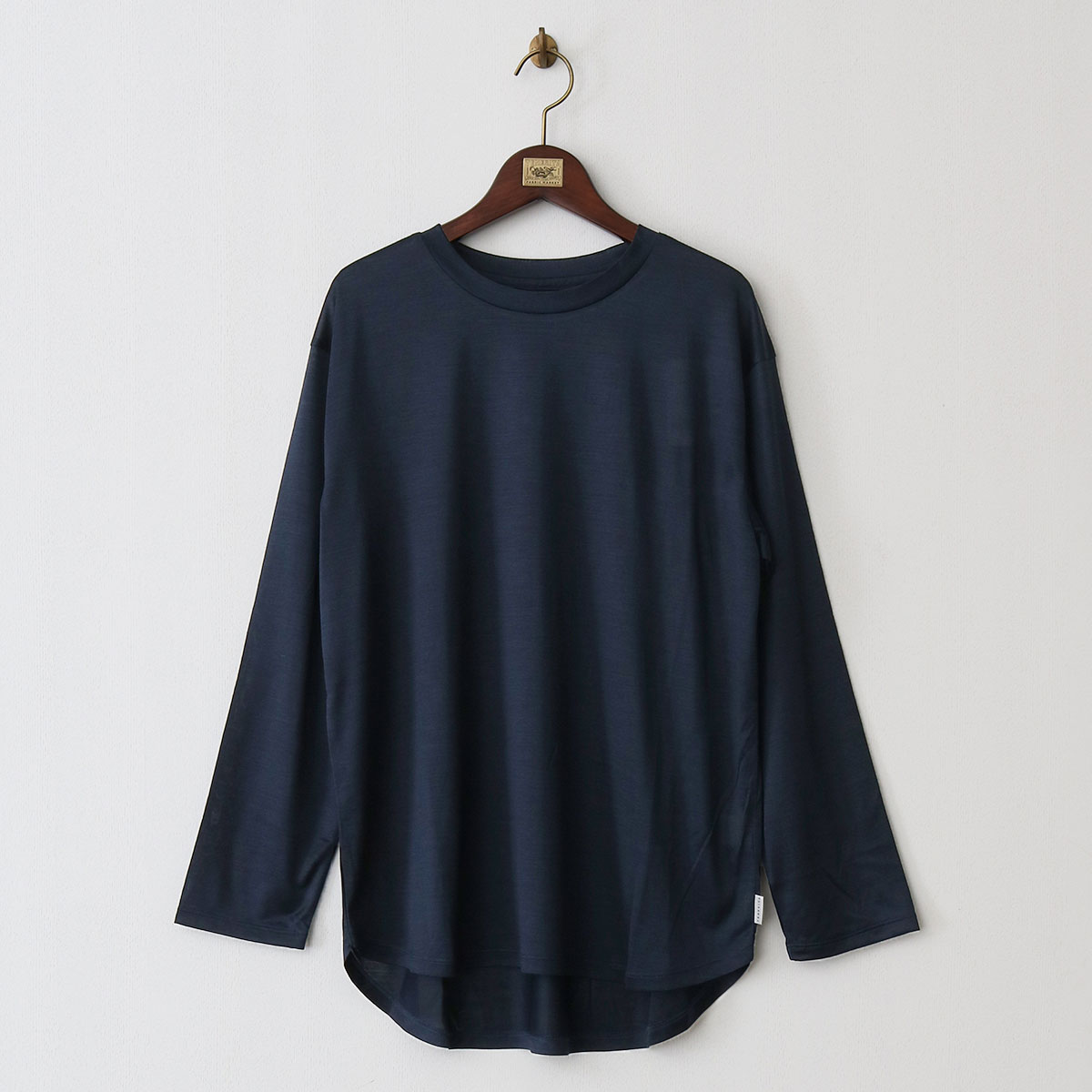 とろみのある生地の心地よさを引き立てるシンプルなデザインと、縫い目をできるかぎりフラットにした丁寧な縫製にも上質さを感じられる一着です。