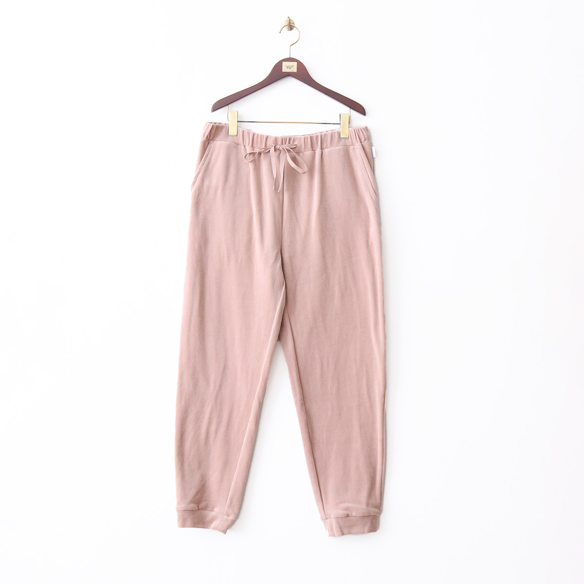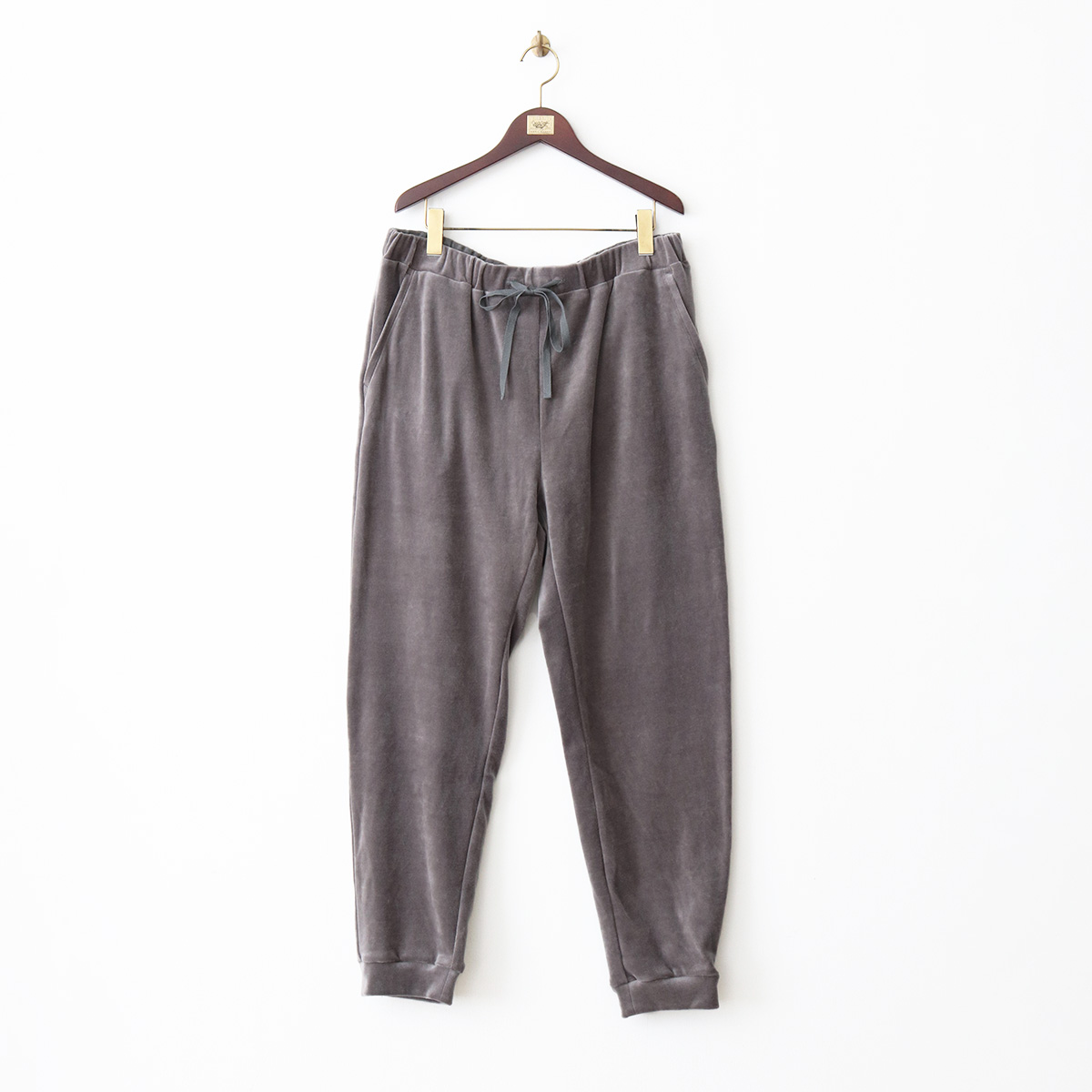 このベロア素材を使い、テーパードシルエットのシンプルなメンズパンツです。