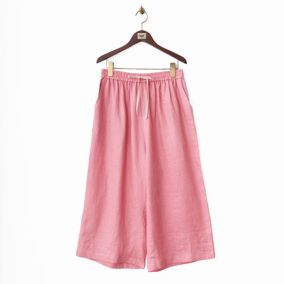 繊維の中に空気を含むリネンならではの通気性と、吸湿・速乾性。汗ばむ季節にもさらりとしたはき心地が続きます。
