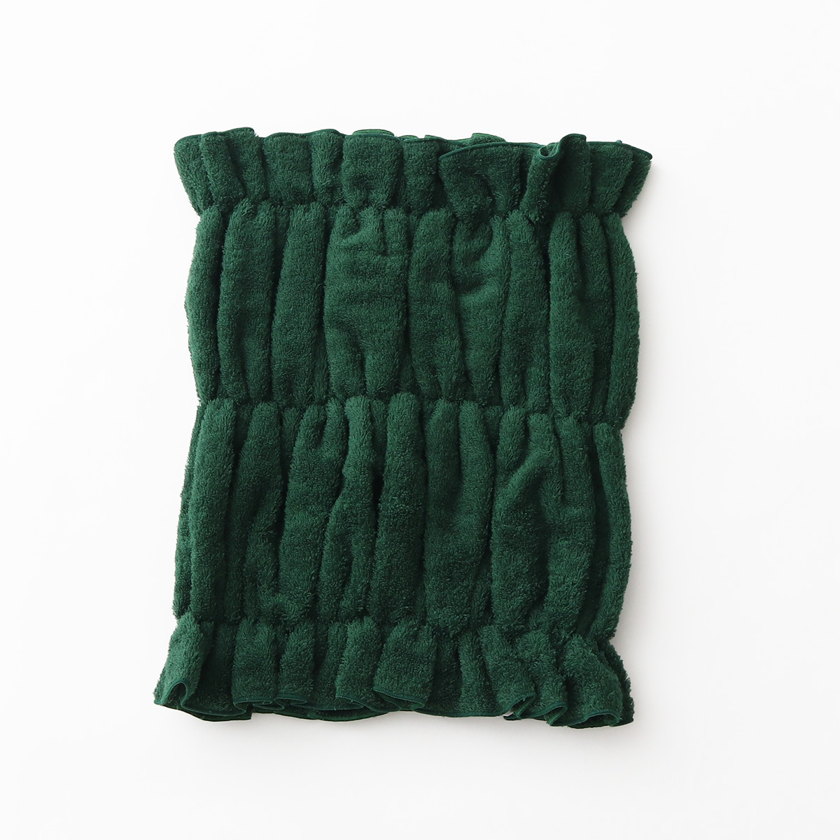 パイルにゴムを入れ伸縮性を持たせることによって、ずれ落ちにくく頭にフィット。
