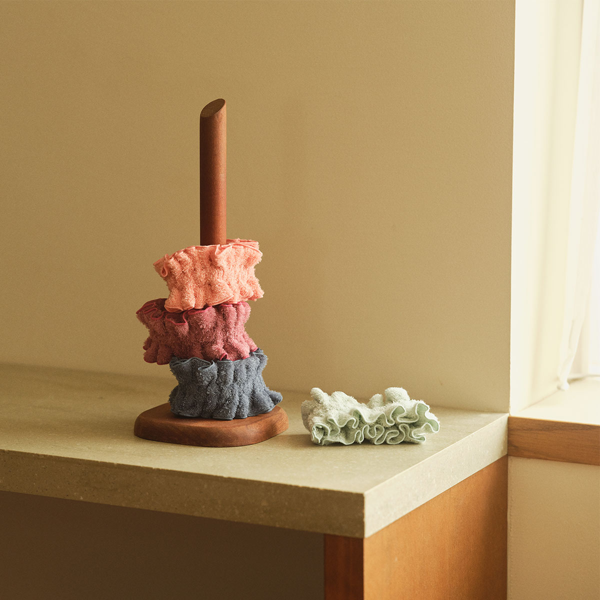 人気アイテム「ヘアタオル」と同じ繊細なタオル地で、髪をやさしくまとめます。