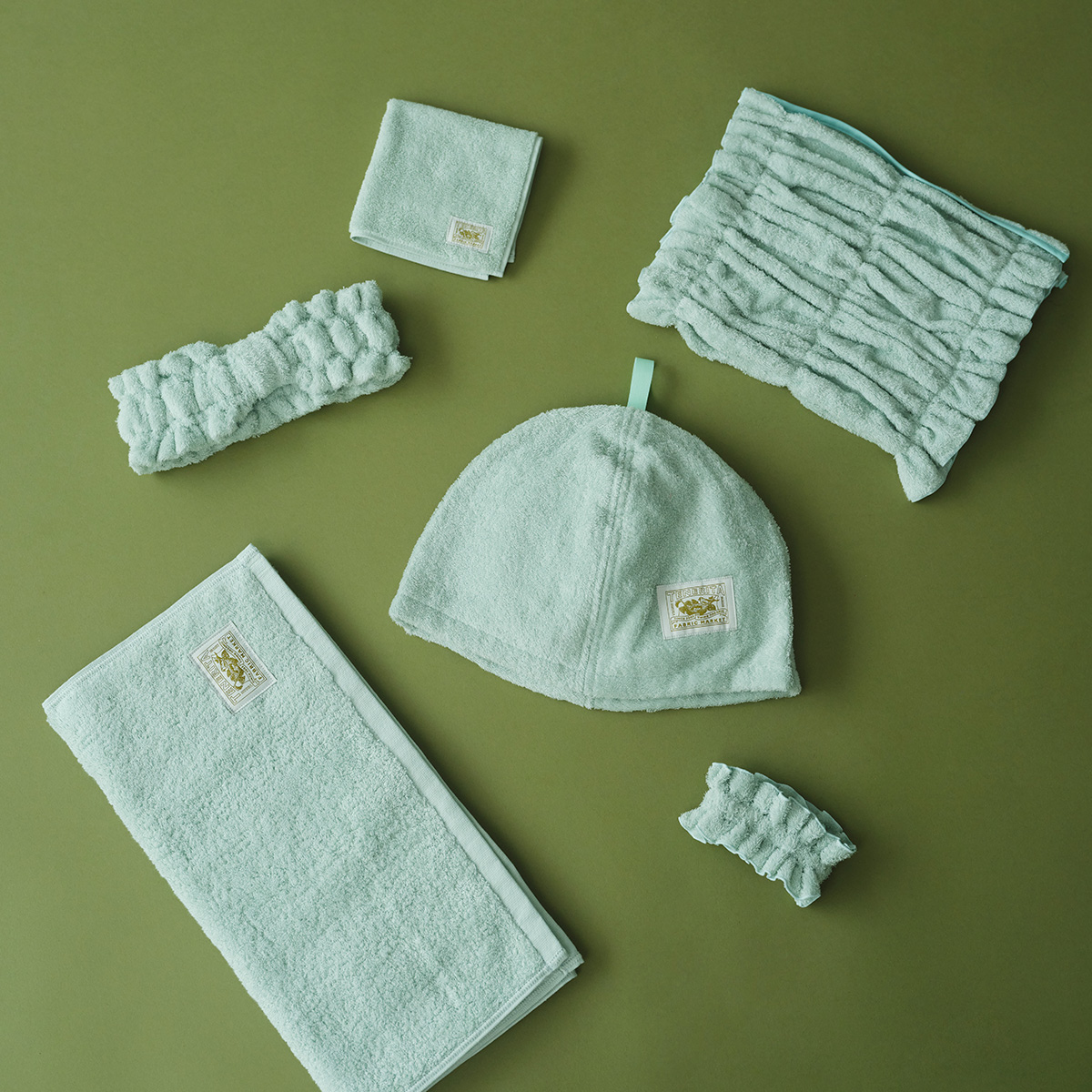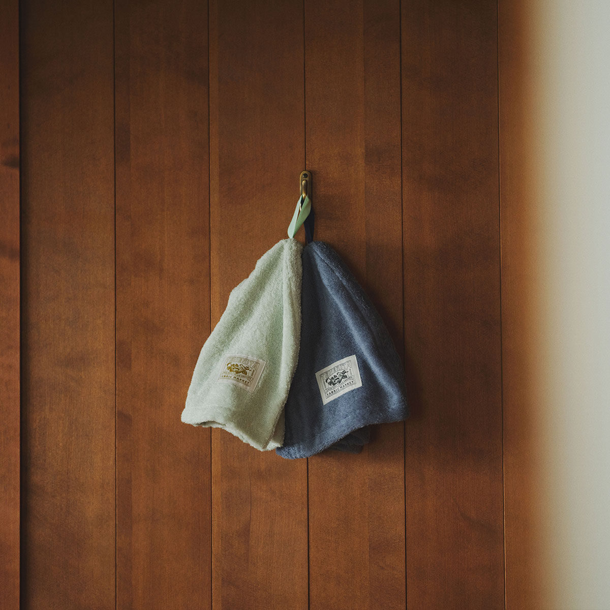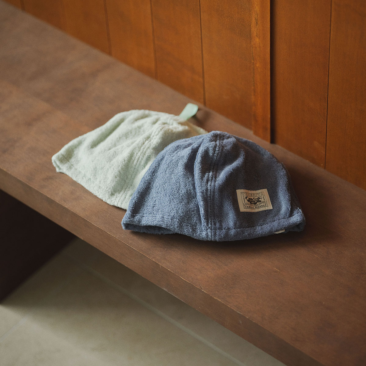 薄く軽いパイル地で作ったやわらかなサウナハット