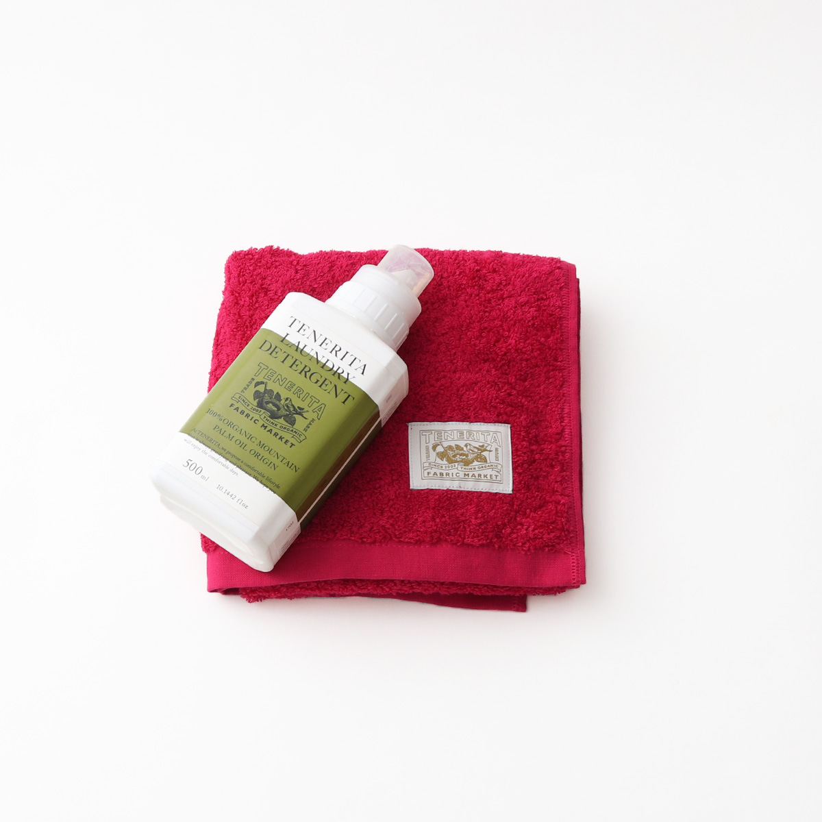 思わずふれずにはいられない究極の柔らかさの超甘撚りフェイスタオルの限定カラーと、オールナチュラルとは思えない洗いあがりを誇る洗濯洗剤を特別なブルーミングレッドボックスに入れたギフトセットです。
