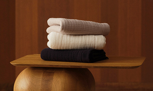 超長綿から作られる糸のしなやかさと凹凸による通気性のよさを合わせた、やわらかく乾きやすいシリーズ。