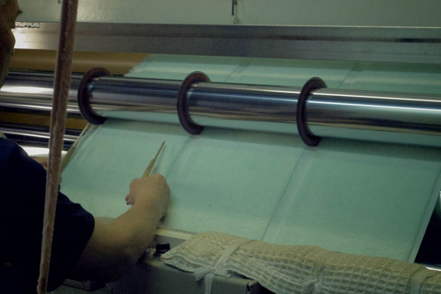 明治時代からパイル織(編)物の名産地と知られ、日本一の生産高を誇る、和歌山県高野口。 シール織りという伝統的な織物の製法は、日本でここだけで行われています。 生産工程には職人技を必要とする手作業が多く、伝統的な技術が今でも受け継がれ守られています。 特殊な織り方で生まれる独特な光沢と風合いは、テネリータのコットンブランケットで体験していただけます。